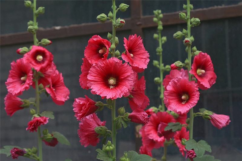 蜀葵(学名:Althaea rosea (Linn.) Cavan.),别称一丈红、大蜀季、戎葵。二年生直立草本,高达2米,茎枝密被刺毛。花呈总状花序顶生单瓣或重瓣,有紫、粉、红、白等色;花期6月至8月,蒴果,种子扁圆,肾脏形。喜阳光充足,耐半阴,但忌涝。 原产中国四川,现在中国分布很广,华东、华中、华北均有。由于它原产于中国四川,故名曰“蜀葵”。又因其可达丈许,花多为红色,故名“一丈红”。于6月间麦子成熟时开花,而得名“大麦熟”。